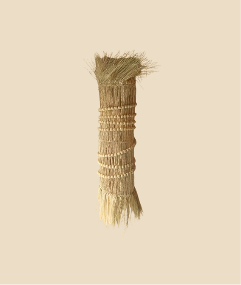 PANTALLA DE PARED ECHA DE PALMA SILVESTRE CON ESTRUCTURA METALICA 30 DE DIAMETRO X 92 CM DE ALTO 25 CM DE FLECO