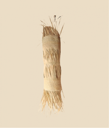 PANTALLA DE PARED ECHA DE PALMA SILVESTRE CON ESTRUCTURA METALICA 34 DIAMETRO X 90 CM ALTO Y 40 CM DE FLECO
